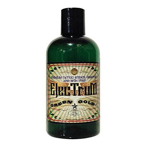 Details: Electrum Tattoo Stencil Remover & Skin Prep comes from the famous Electrum brand with its extensive list of famous artist patrons. This solution is perfectly formulated for you and your client. Easily remove improperly placed stencils without the use of excessively harsh chemicals. Use as a skin prep to remove surface oils and dirt prior to placing your stencil. It smells good too! Don’t eat it! Available in 8oz bottle. Contains Australian Tea Tree Oil, a powerful cleaning agent without drying out the skin. * Electrum is a proven performer and is used by many well known industry pros. * It works great with both carbon stencils & sharpies. * Skin friendly. * This product may be green, but it is NON toxic and Vegan approved. * 100% Made in the USA. * Electrum was created by tattoo artists, for tattoo artists. * Pleasant to be around. * Electrum is non-greasy and it smells good, too!