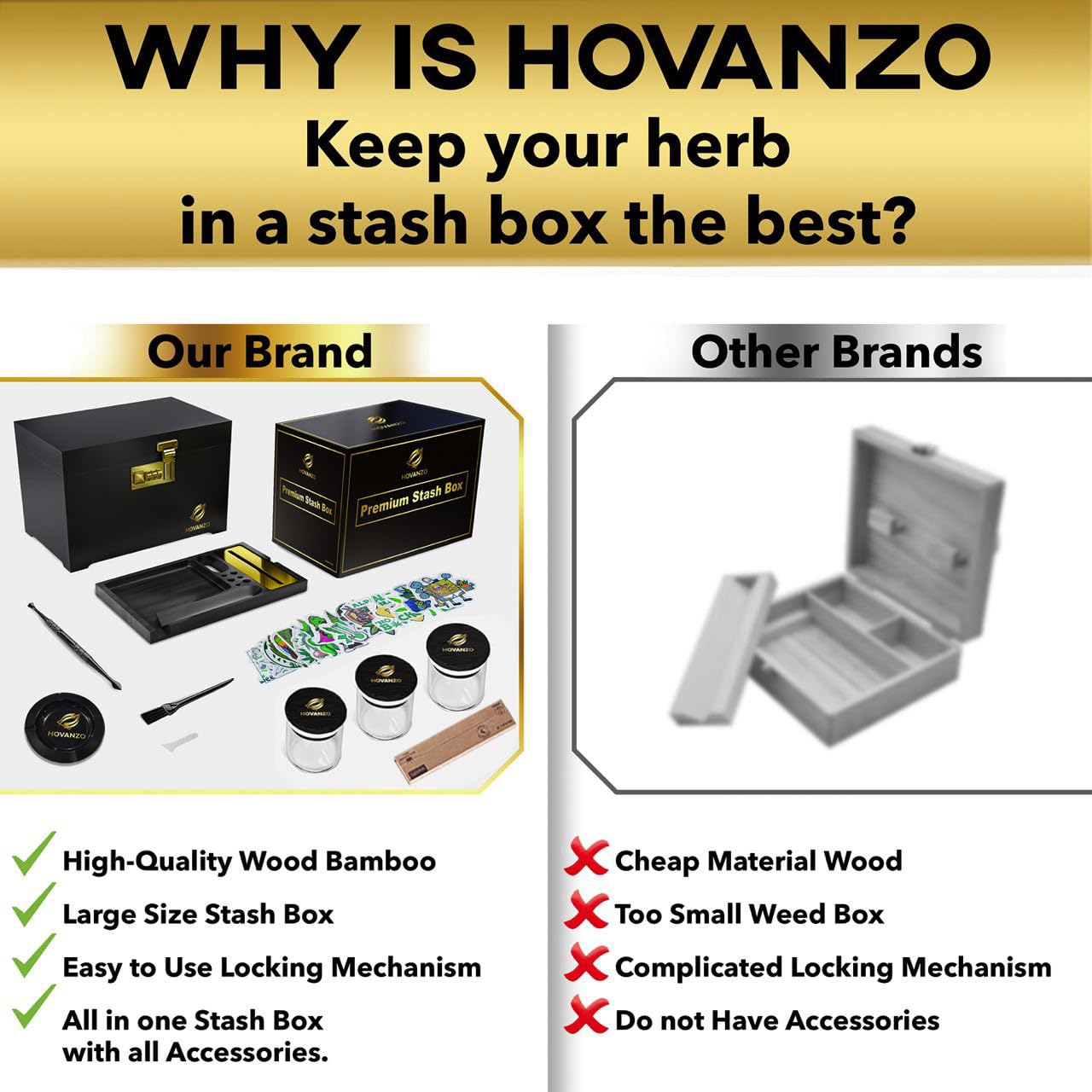HOVANZO Premium Large Bamboo Box - Decorative Box Wooden Locking Storage Box with Rolling Tray - Decorative Wood Box for Herbs and Accessories - Decorative Box Set with Combination Lock