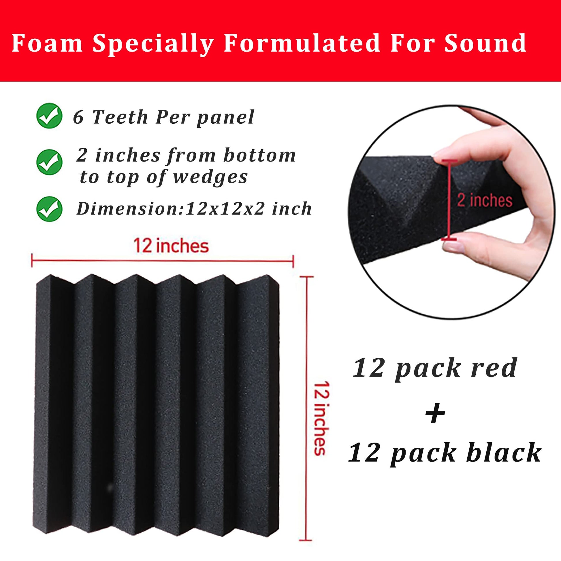 KTOESHEO 24 Pack Acoustic Panels,2" x 12" x 12"Sound Proof Foam Panels for Wall,Fireproof Absorbing Noise Cancelling Panels,to Absorb Noise and Eliminate Echoes. (12 red+12 black)