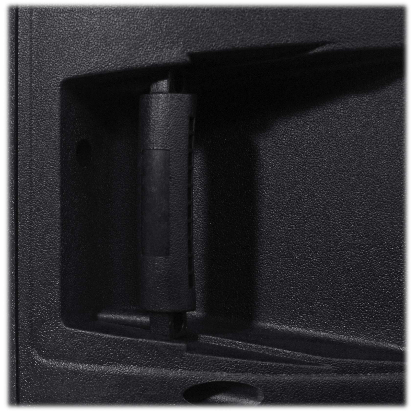 - Additional balanced line output via XLR for linking of additional speaker systems. Versatile trapezoidal enclosure design allows different positioning. Flyable and stand mounting with 35-mm pole socket. Tilts on its side for use as a floor monitor with included brackets. Ergonomically shaped handle for easy carrying and setup. High-quality components and exceptionally rugged high impact ABS construction. Amplifier clip limit LED indicator & power LED cabinet rear