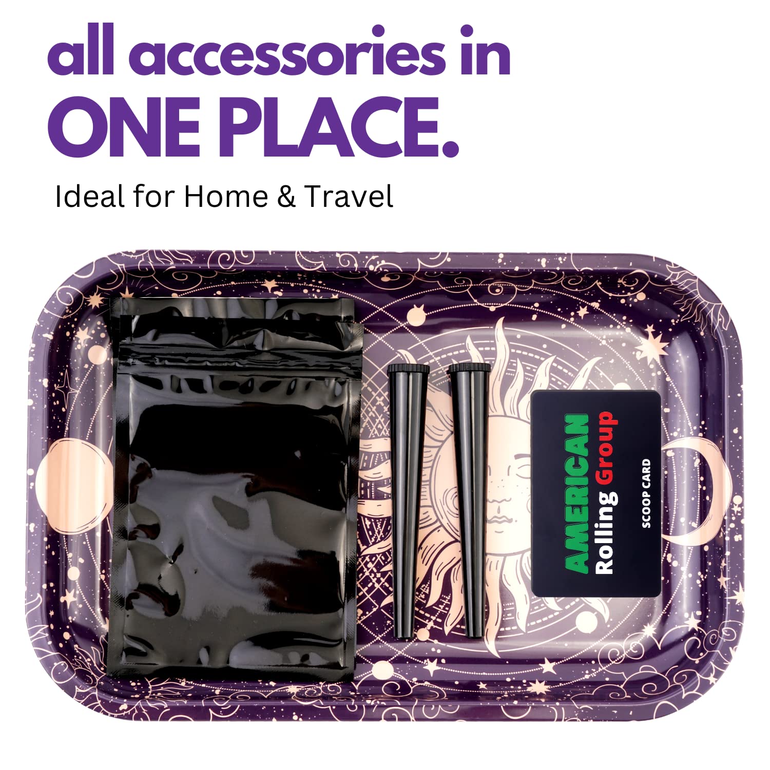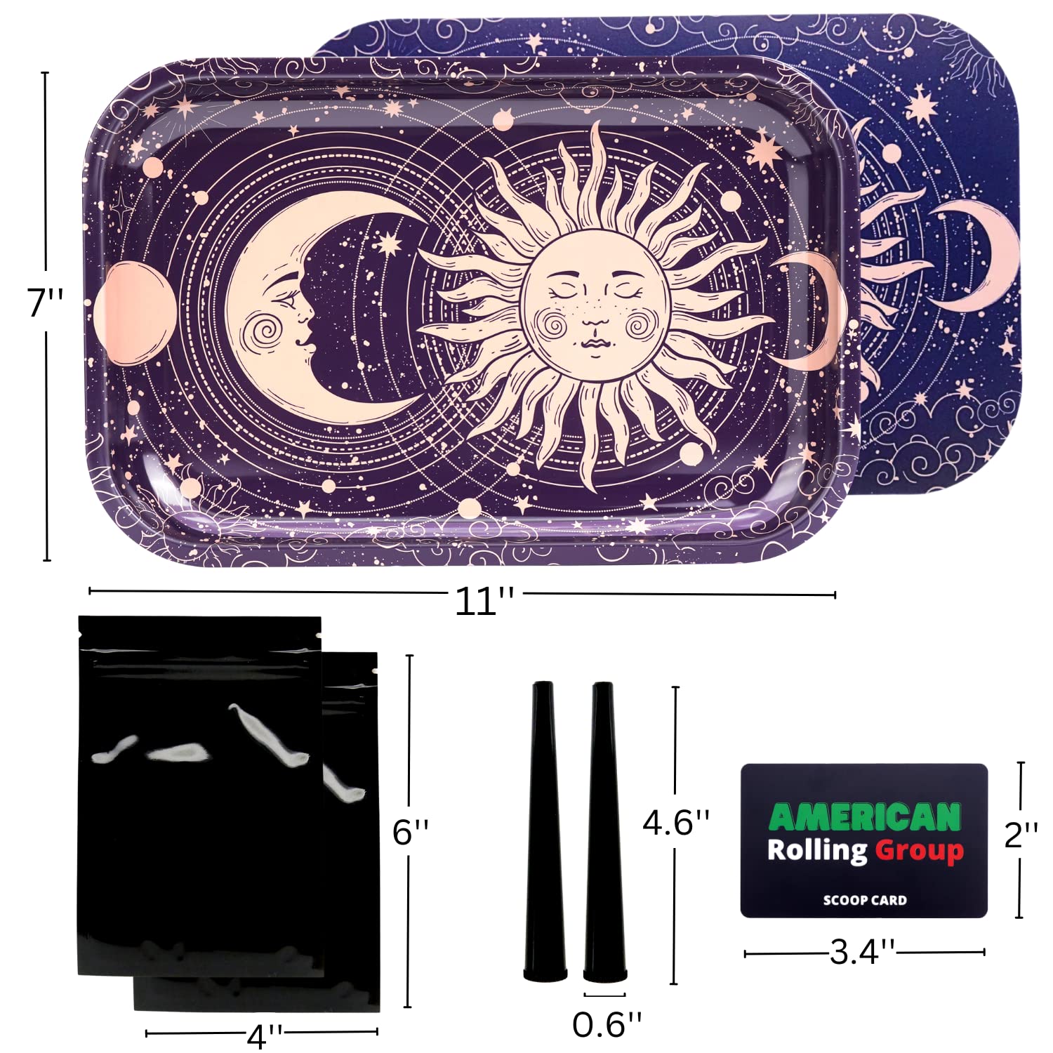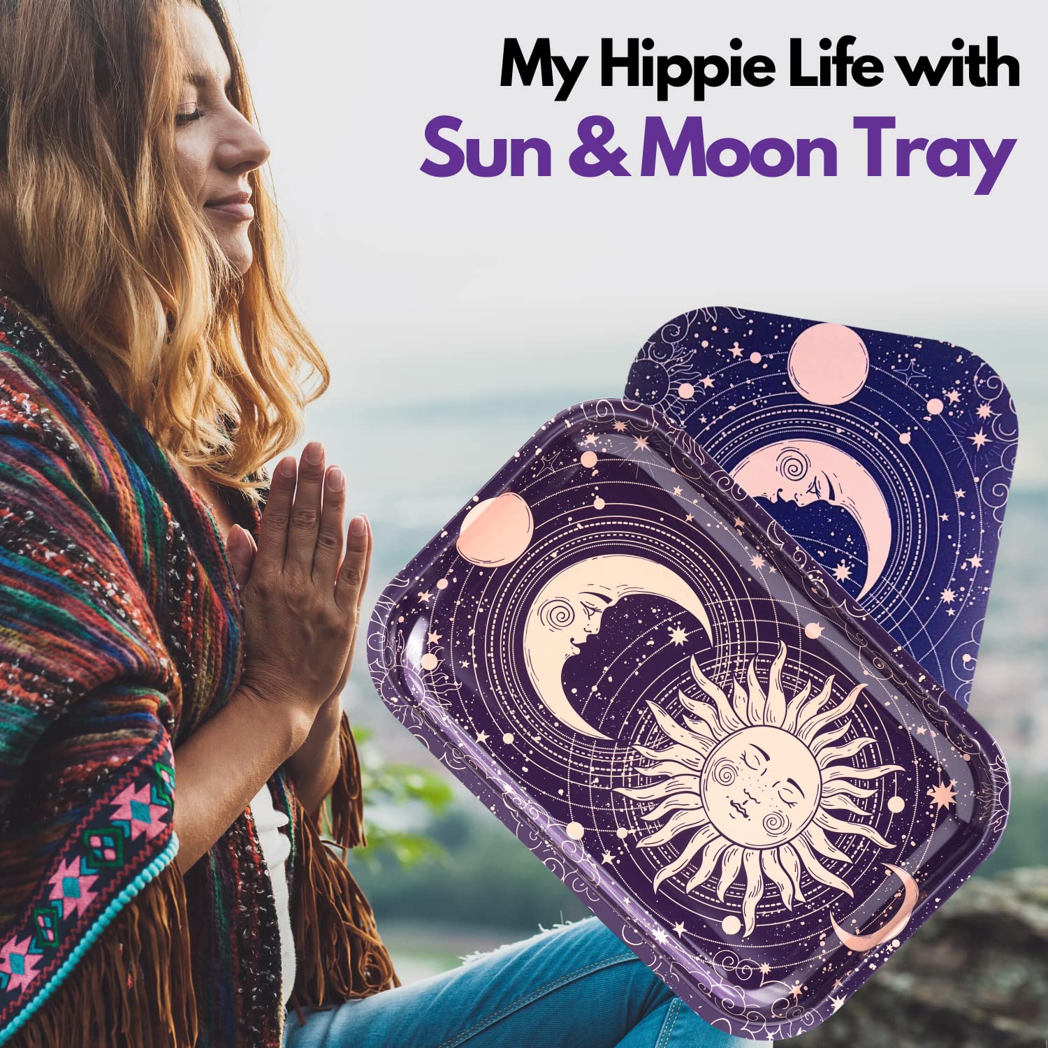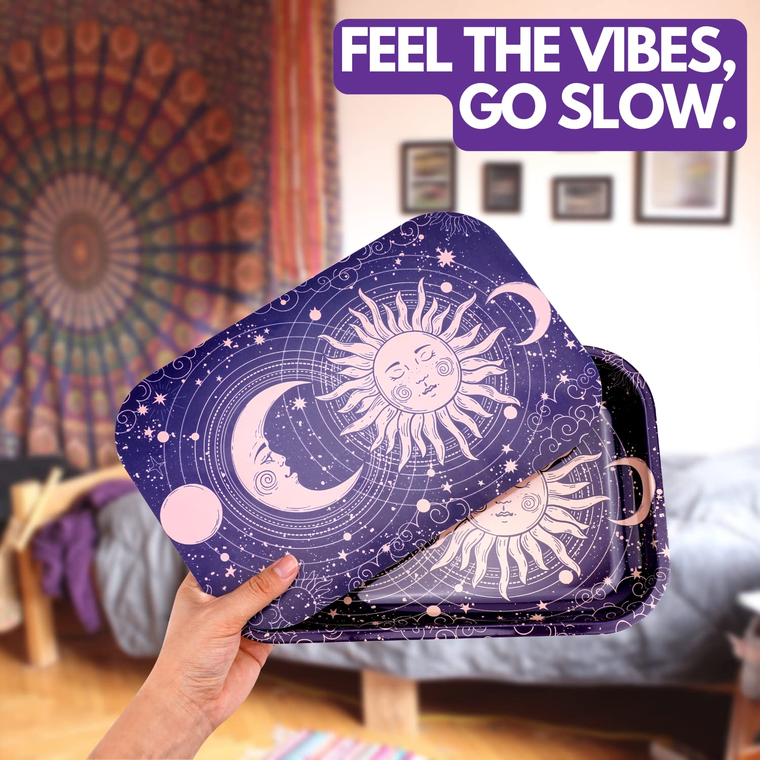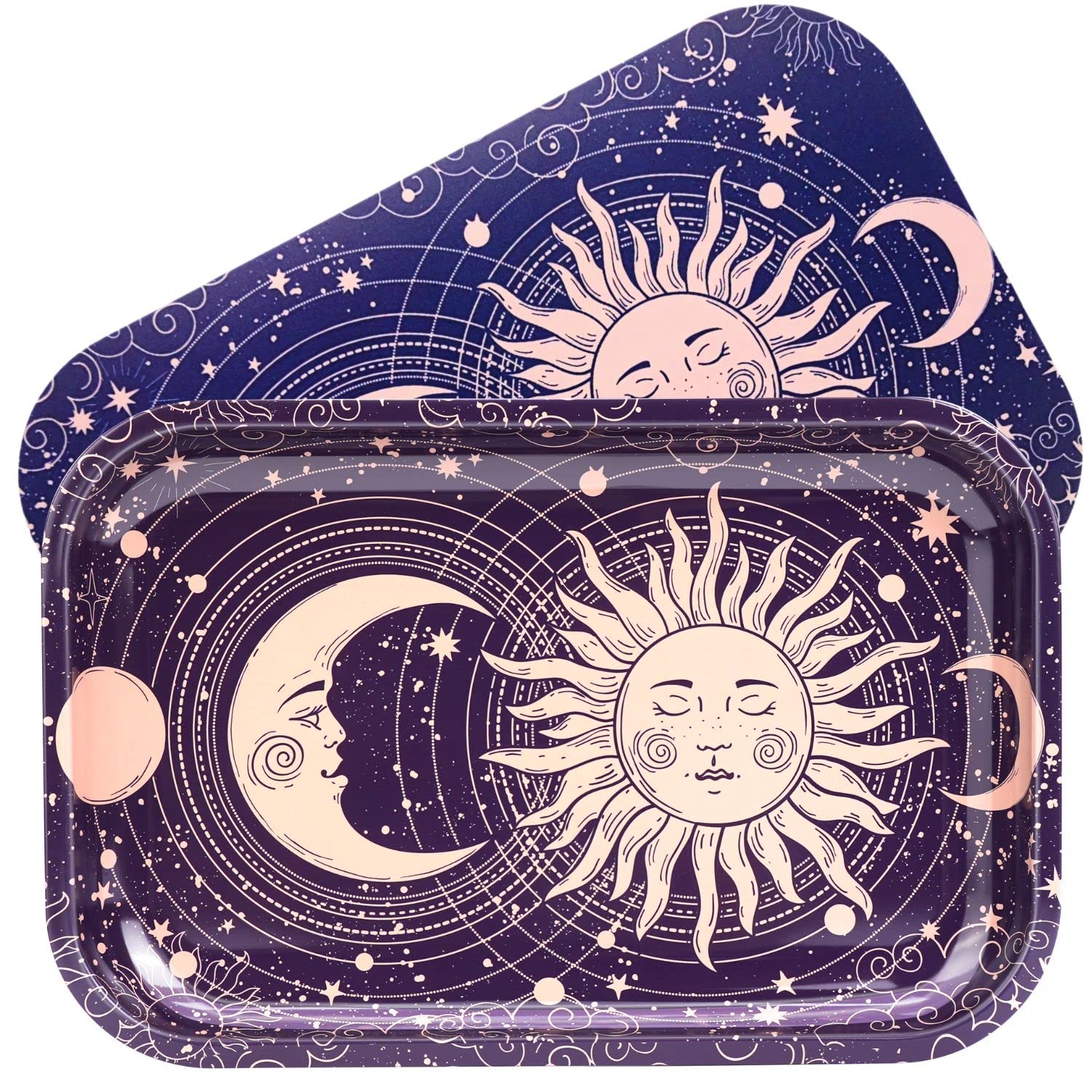 Sun Moon Rolling Tray with Magnetic Lid, 11''x7'' - Large Storage Decorative Tray - Ideal for Home & Travel, Celestial Aesthetic Metal Tray Set - Mystical Gifts for Spiritual Hippie, Astrology